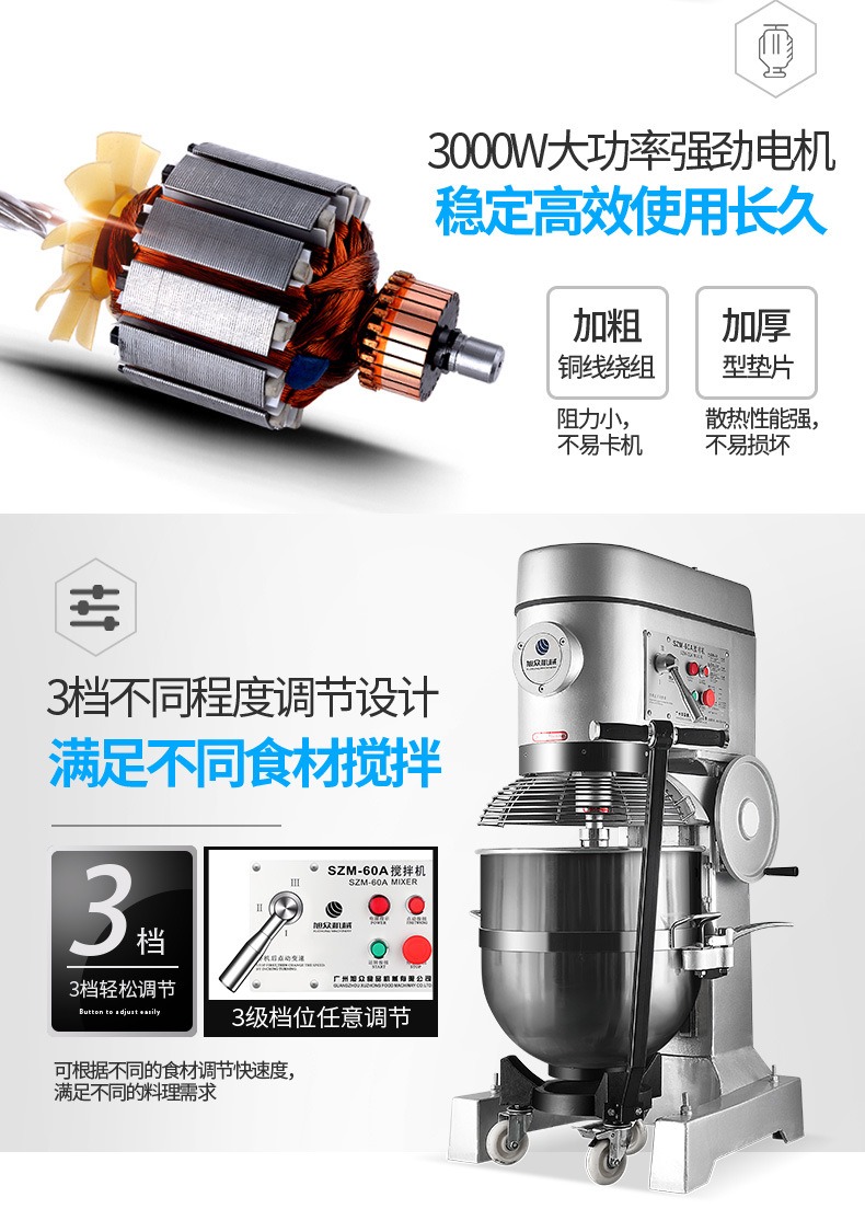 多功能搅拌和面机,创业神器,开创厨房新时代。多功能高效率,让您省心省力又省事。360行星轨迹搅打系统,搅拌均匀保持口感。3000w大功率强劲电机,稳定高效使用长久。